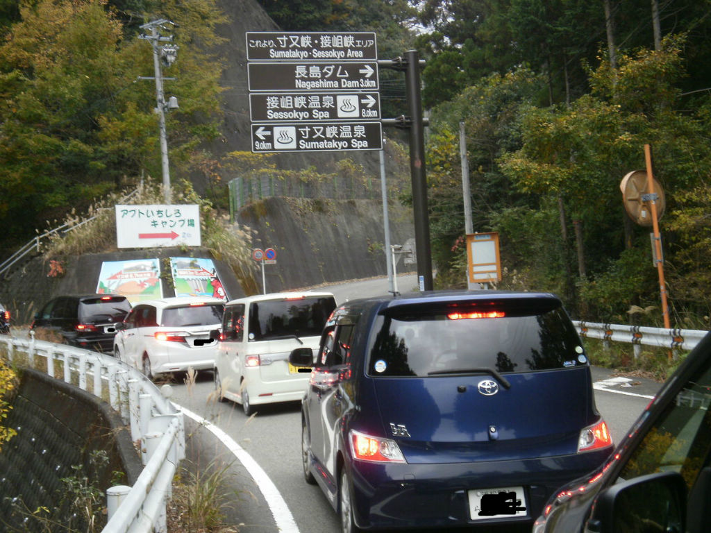 旧道を抜けると対岸の道に行く訳ですが、なにこの車の渋滞は・・・・。